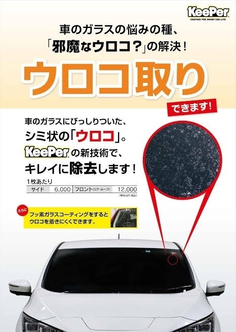 ネット通販の普及に伴いDIY商品も多数販売されていますが価格差がありますよね? フロントガラスコーティングの施工費やDIYコーティング剤の値段(価格)の違いはコーティングの成分によって大きく価格が異なります。 この記事では、フロントガラスコーティングの値段(価格)を種類別に徹底解説します。 貴方に適したフロント撥水ガラスガラスうろこ取り 作業時間目安 最大 1日 5,000 円~ 窓ガラスのうろこは市販のクリーニング剤を使って強引に落とそうとすると、ガラスに傷がついてしまう可能性があります。 福栄オートサービスでは専用のクリーナーを使って施工。 そのため、ガラスのうろこ汚れをキレイに落とすことができます。 また、ガラスに傷がつかないよう丁寧に施工するので、傷が の2パターンです。 一見「2台分の契約をする」という点で同じように見える内容なのですが、実際にはそれぞれ大きな違いがあることをご存知ですか? その違いとは「 車両入れ替え(等級の交換)ができるかどうか 」という点です2台目以降の新規ご契約キャンペーン キャンペーンの対象とな
